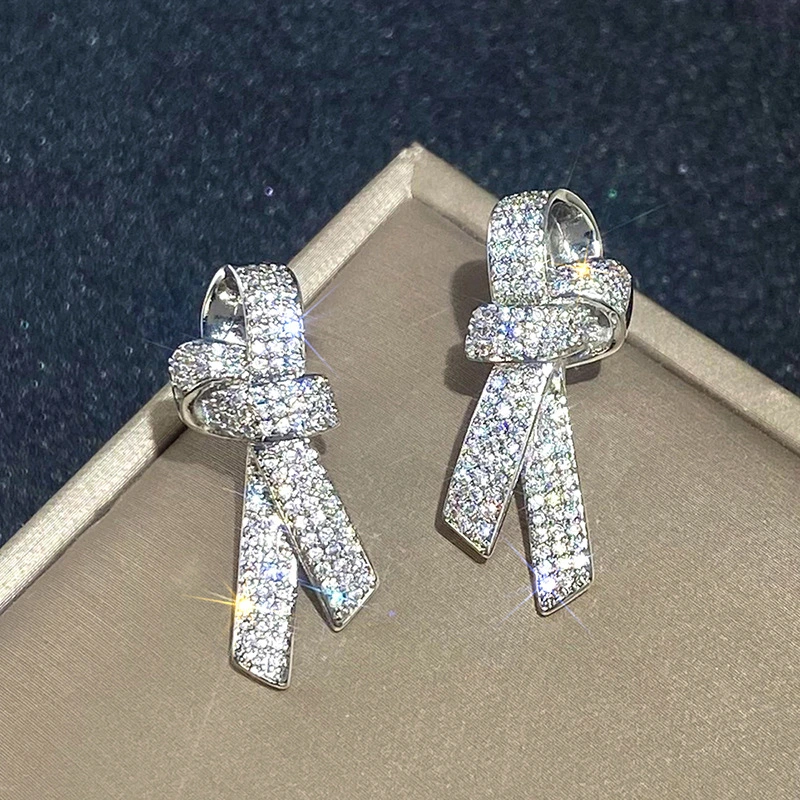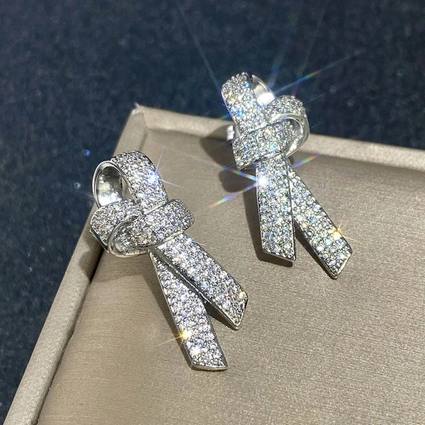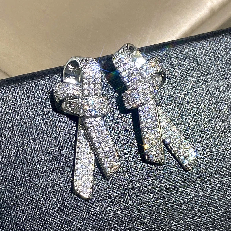 Модные, темпераментные серьги с микро-инкрустацией циркония, серьги в виде галстука-бабочки для женщин, трендовые, популярные блестящие серьги
