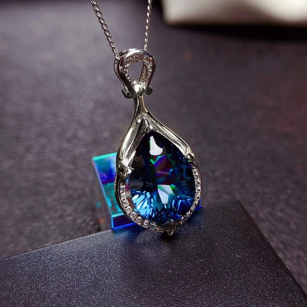 Новая модная подвеска в виде слез русалки, онлайн-продажи, горячее ожерелье из искусственного сапфира с цветными драгоценными камнями в форме капли воды