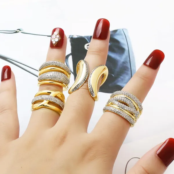 Кольцо класса люкс в европейском и американском стиле, модное, темпераментное, с циркониевым кольцом в форме конского глаза, многослойное, полое, с дизайном для указательного пальца