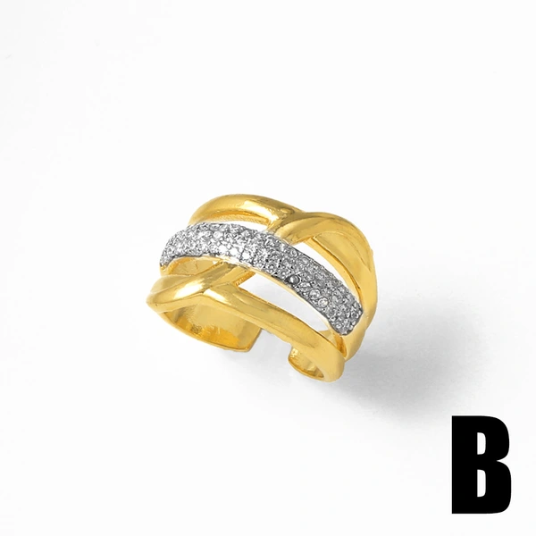 Новое двухцветное кольцо-крестик для женщин, покрытое медью, 18-каратное золотое открытое кольцо rik79ring