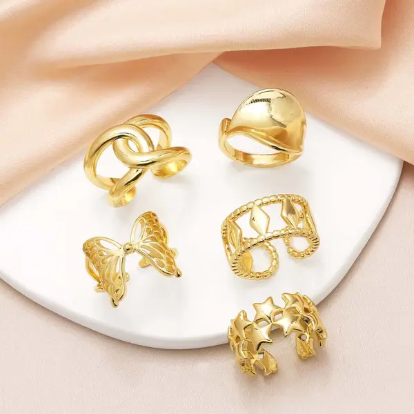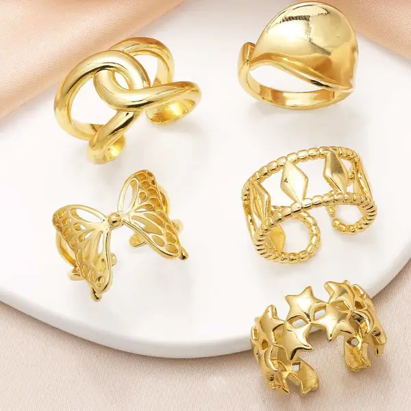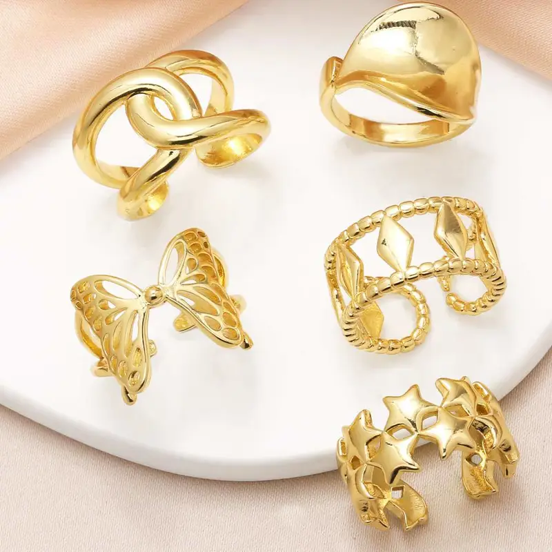Новое женское кольцо-бабочка в виде пятиконечной звезды, покрытое полированной медью и позолоченное 18-каратным золотом, в виде открытого креста, rih45