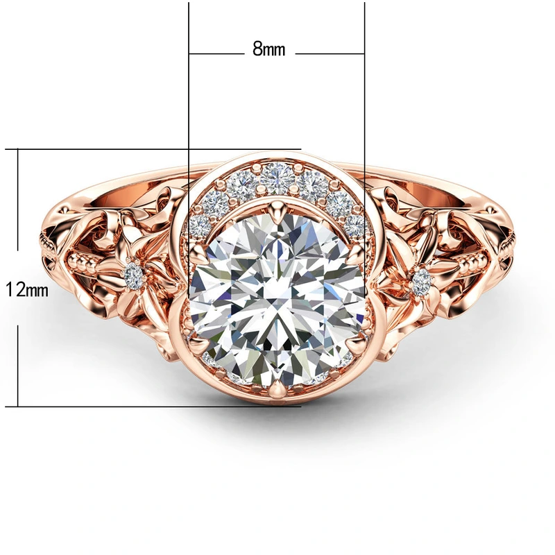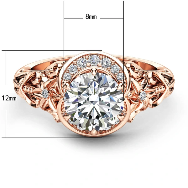 Новое женское кольцо с имитацией цветка и полым бриллиантом в европейском и американском стиле, роскошное, покрытое медью, розовое золото, инкрустированное цирконием