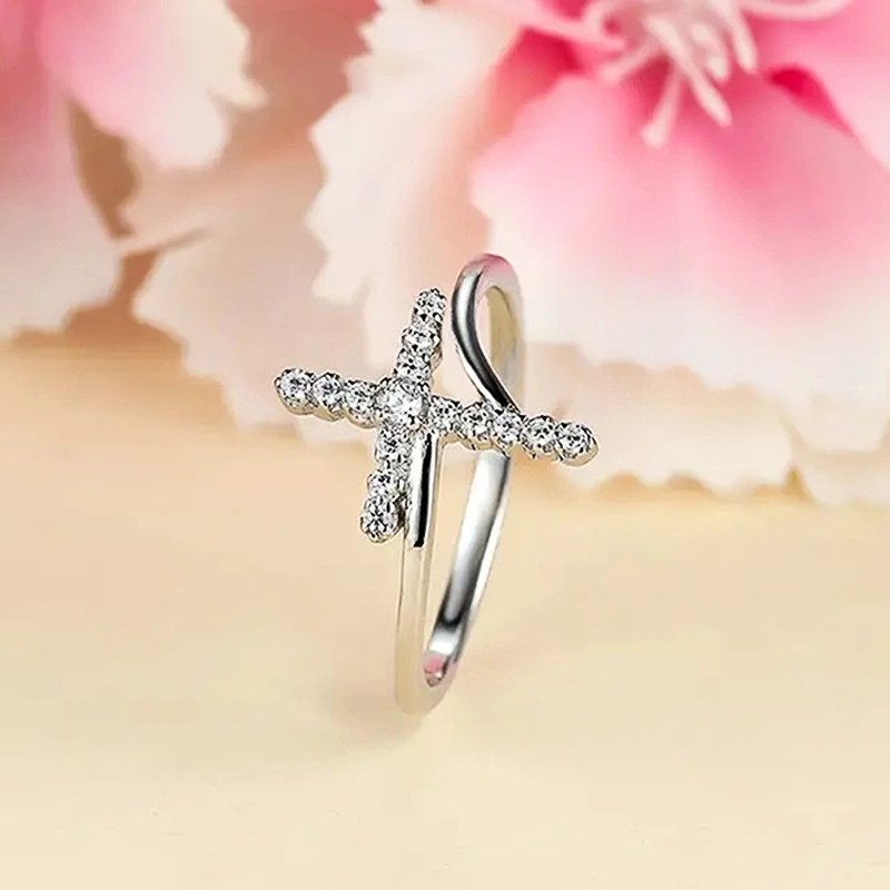 Новое кольцо с цирконием, полый крестик, четыре когтя, модное дизайнерское предложение, обручальное кольцо, подарок на день рождения