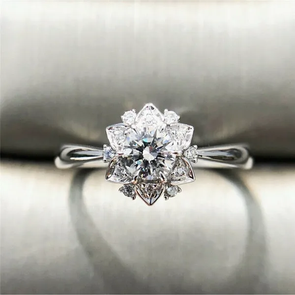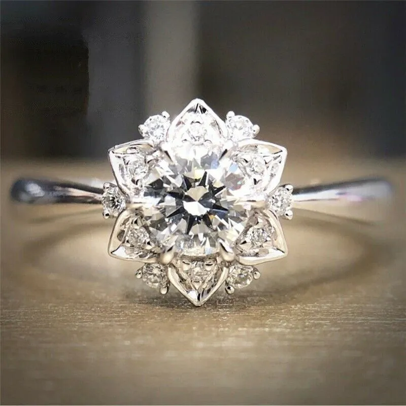 Новое изысканное кольцо с имитацией цветка и снежинки из бриллианта и циркония, европейское и американское свадебное помолвочное кольцо для банкета