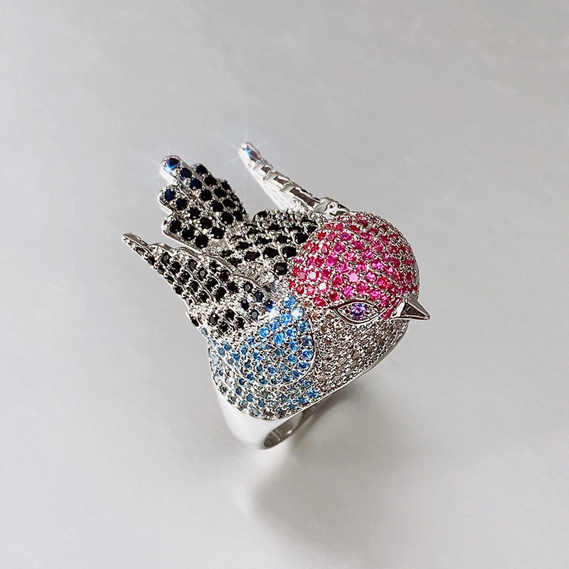 Новое креативное кольцо в виде птицы с бриллиантами, европейское и американское, прочное, модное, креативное дизайнерское кольцо с аксессуарами