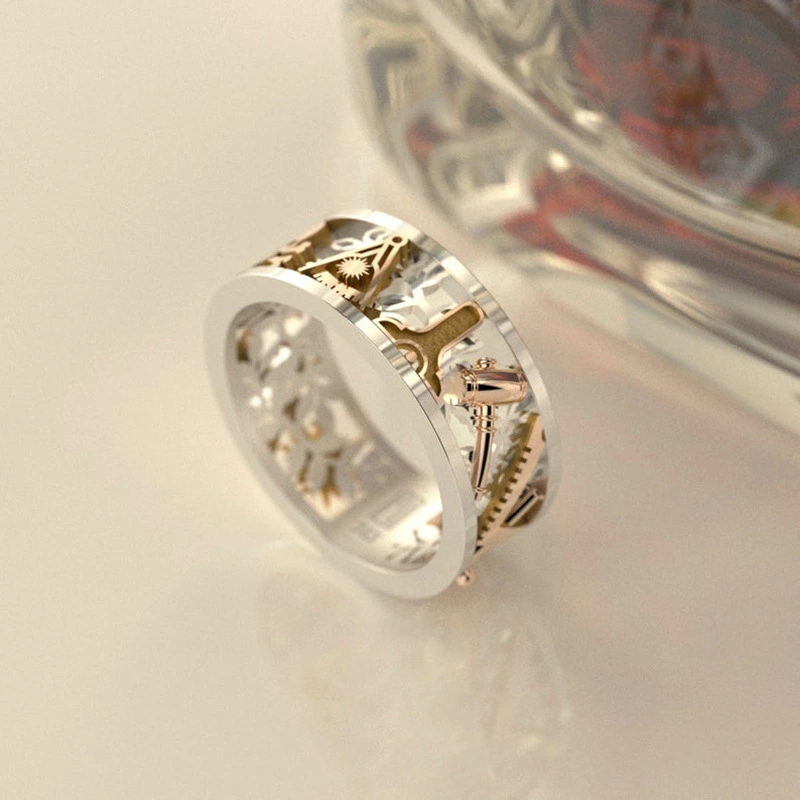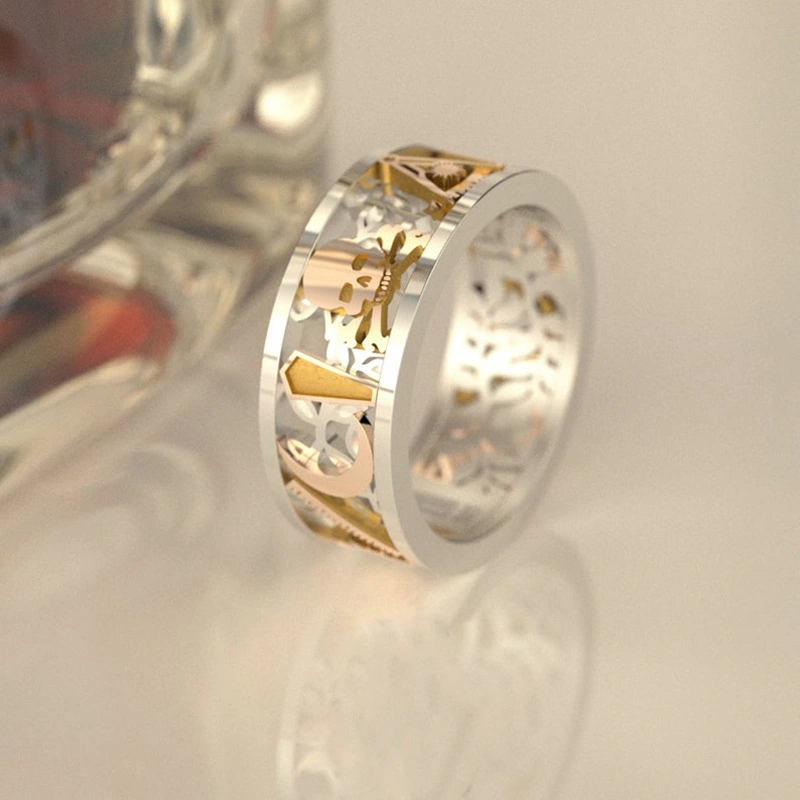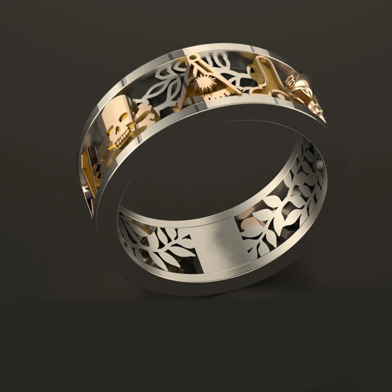 Новое креативное кольцо в стиле панк, полое цветное кольцо, мужское, европейское и американское, двухцветное кольцо, оптовая продажа ювелирных изделий