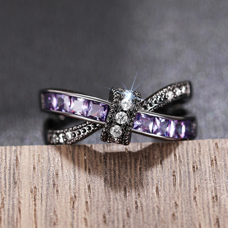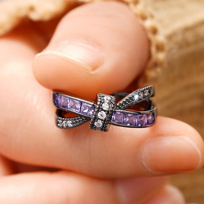Новое милое, классное женское кольцо, обязательное к покупке, черное, фиолетовое, нишевое, индивидуальное, двухслойное, с дизайном