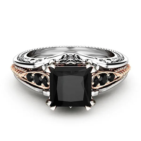 Новое модное женское кольцо в форме восьмиугольного черного квадрата в европейском и американском стиле, изысканное кольцо с полым цирконием