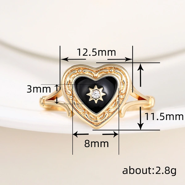 Новое модное золотое темное кольцо в форме сердца с каплями света, роскошное кольцо в готическом стиле для женщин