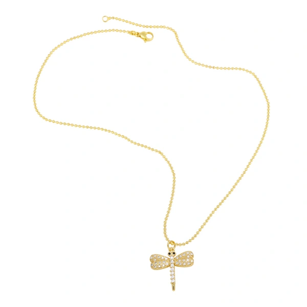 Новое модное маленькое ожерелье в виде стрекозы, женское, с медным покрытием, 18-каратным золотом, инкрустированное цирконием, цепочка на ключицу nkp70