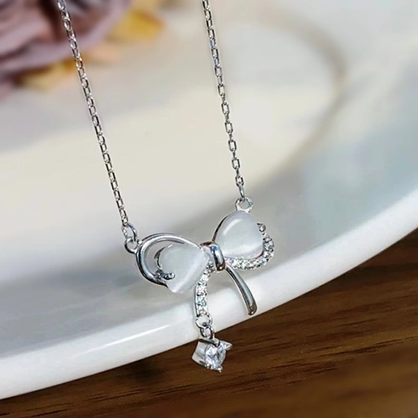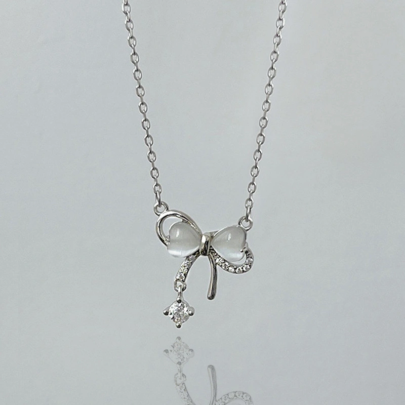 Новое нежное ожерелье в корейском стиле с бантом для женщин, имитация лунного камня, ювелирное изделие, милая леди, супер-популярный стиль
