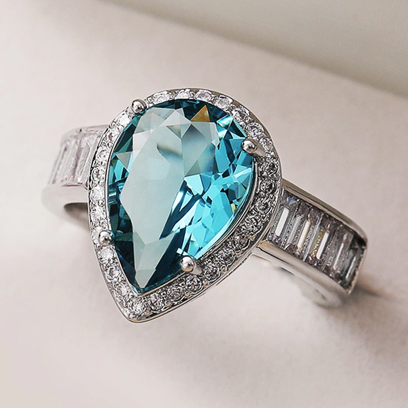 Новое обручальное кольцо, каплевидное кольцо в форме груши, синее обручальное кольцо с бриллиантом в форме капли, кольцо с бриллиантом в форме капли от знаменитости из интернета, ювелирное кольцо из Европы и Америки.