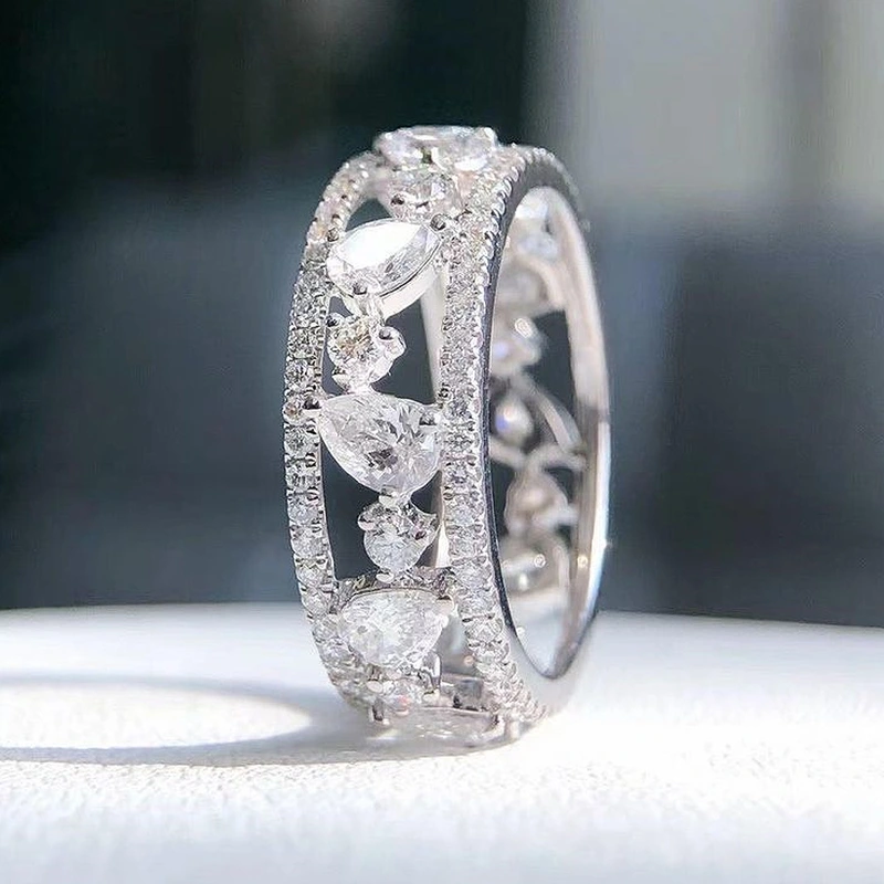 Новое полое кольцо с полным бриллиантом и цирконием, нишевое высококачественное обручальное кольцо для женщин, оптовая продажа