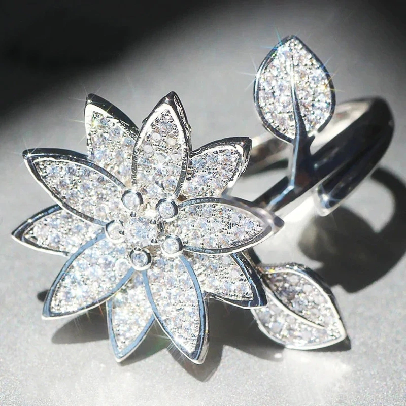 Новое популярное европейское и американское кольцо с микро-инкрустацией, модное кольцо с цветком и листом, регулируемое кольцо для женщин