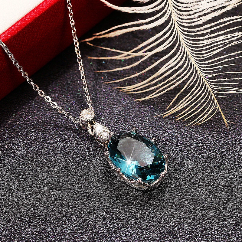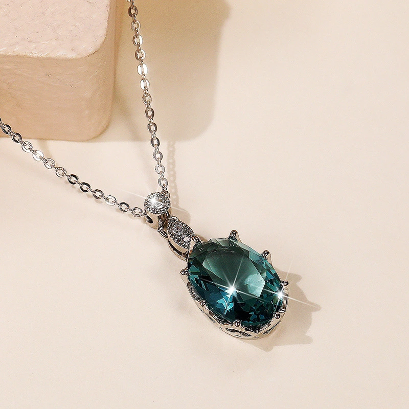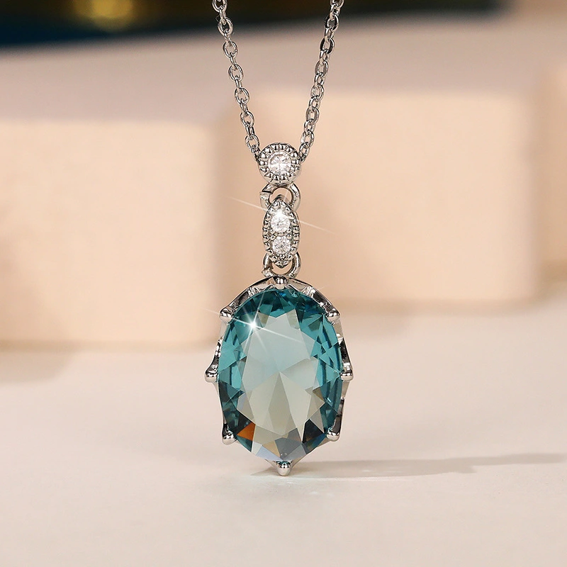 Новое роскошное светло-голубое ожерелье-имитатор с овальным цирконием, модная подвеска, женская цепочка на ключицу