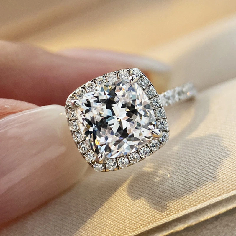 Новое кольцо принцессы в форме квадрата, популярное в европейском и американском стиле, инкрустированное цирконием, женское ювелирное кольцо для предложения руки и сердца