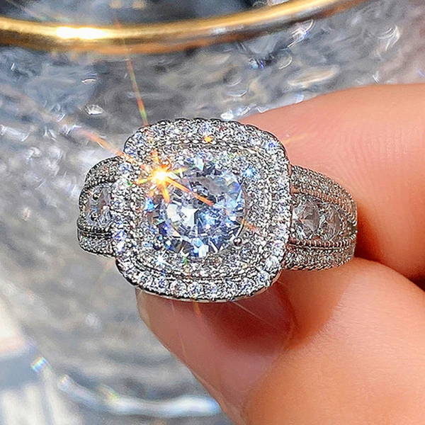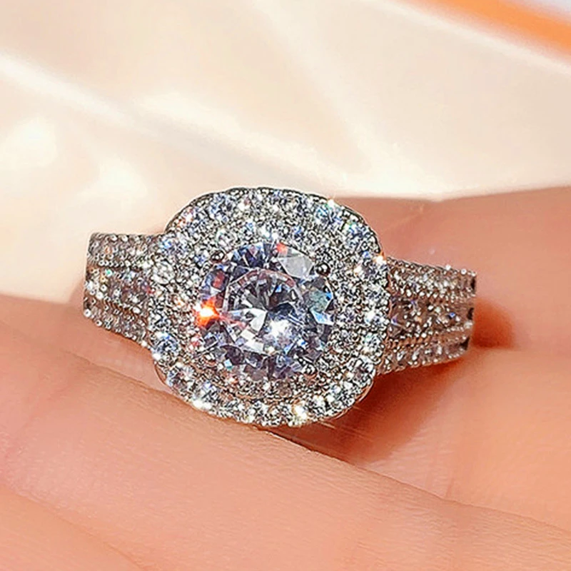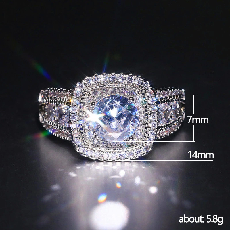 Новое ювелирное изделие ручной работы, платиновое кольцо с имитацией бриллианта, европейское и американское женское двухслойное суперблестящее циркониевое кольцо
