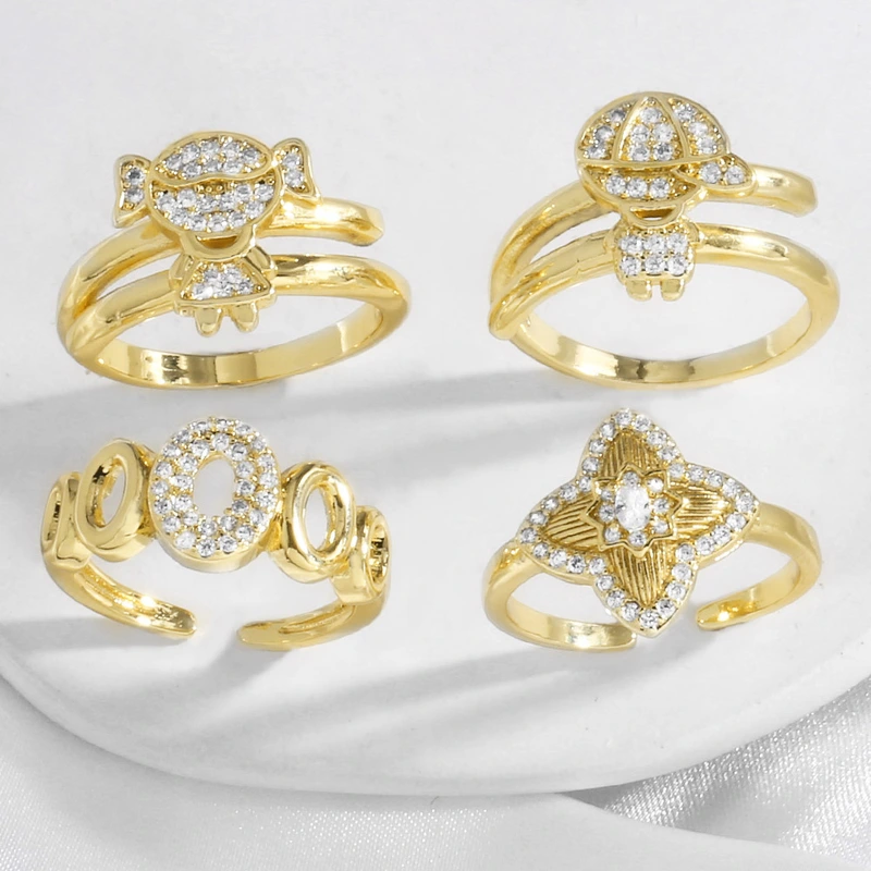 Новое ювелирное кольцо для мальчика и девочки из 18-каратного золота с медным покрытием и цирконами ris03