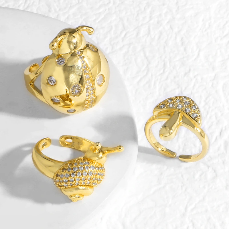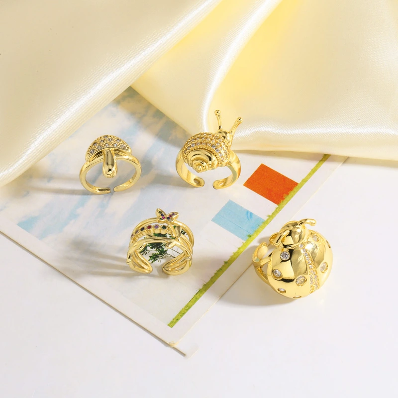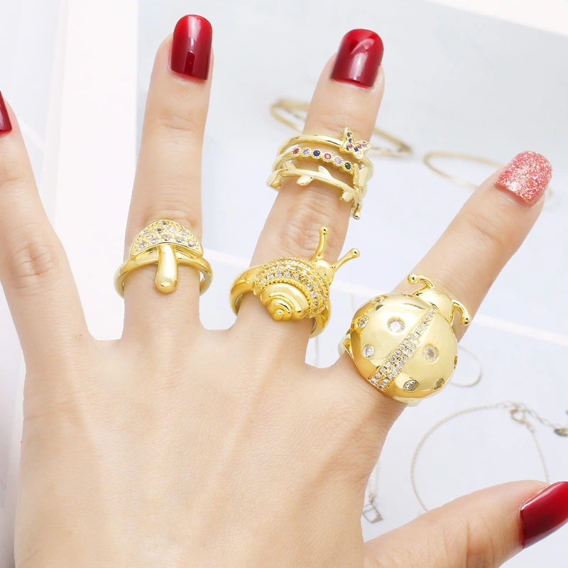Новое ювелирное украшение в европейском и американском стиле, кольцо в виде насекомого-улитки из 18-каратного золота с цирконами и медным покрытием rir64