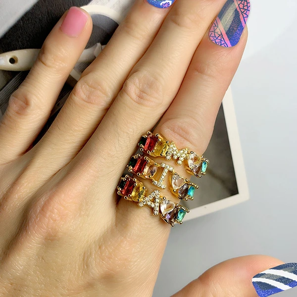 новые аксессуары кольцо с 26 буквами креативное европейское и американское бриллиантовое кольцо для мужчин и женщин парное кольцо rij36