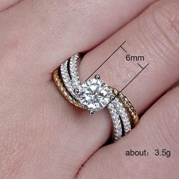 Классическое женское кольцо с четырьмя лапками, имитирующее циркон, с микро-инкрустацией, двухрядное двухцветное кольцо с поворотной рукояткой, обручальное кольцо для женщин