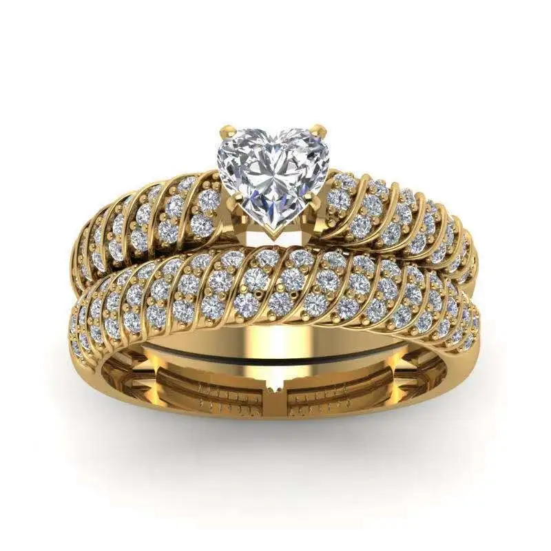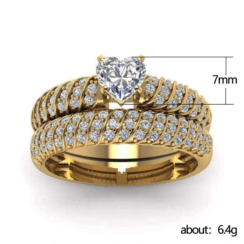 Новые европейские и американские женские парные кольца со стразами из сплава, модные обручальные кольца с золотым покрытием