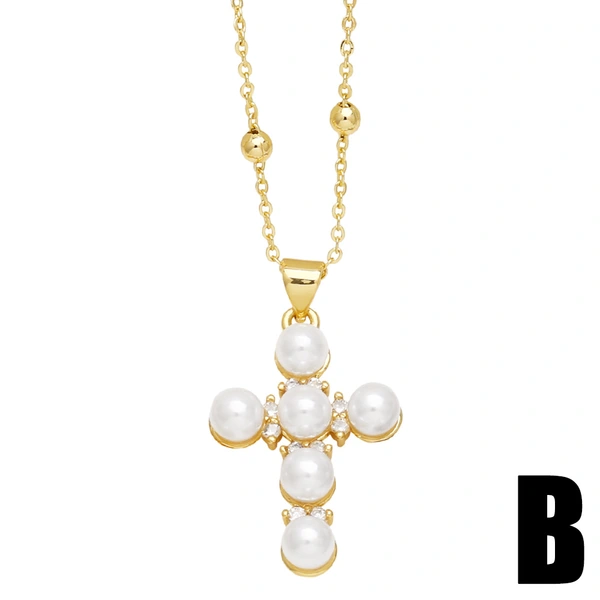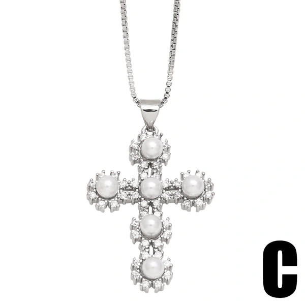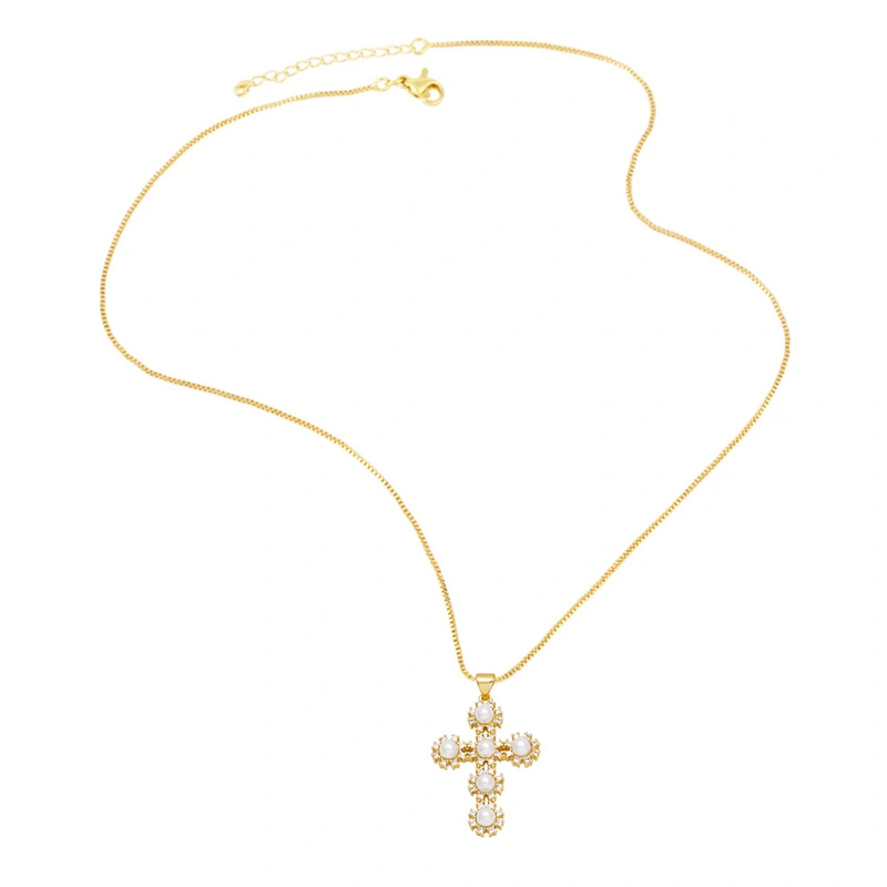 Новые европейские и американские ювелирные изделия, модные, индивидуальные, инкрустированные жемчугом и цирконами, крест, ожерелье, универсальная цепочка для свитера nks63