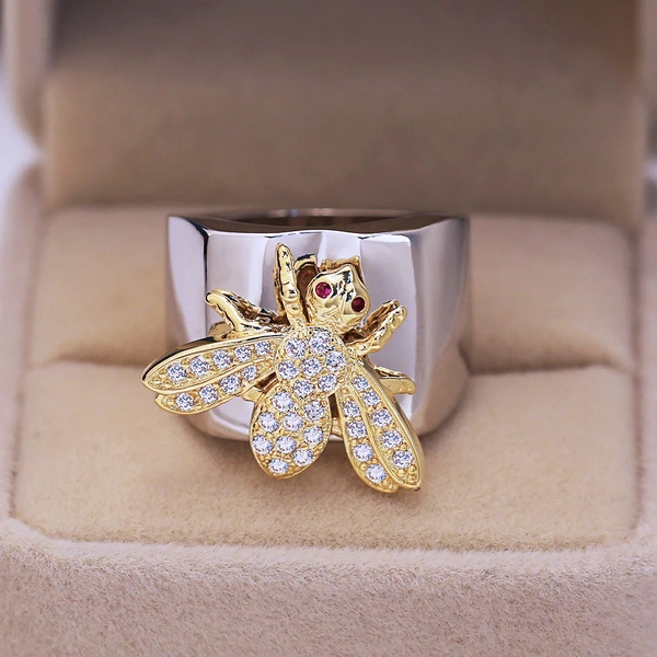 Новые медные украшения из Японии, Кореи, Европы и США, милые кольца с цирконами разных цветов в виде пчел, аксессуары для женских колец из настоящего золота, сохраняющие цвет.