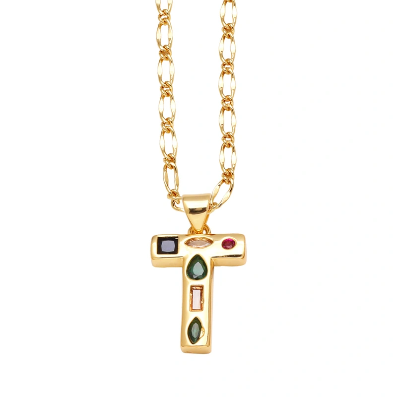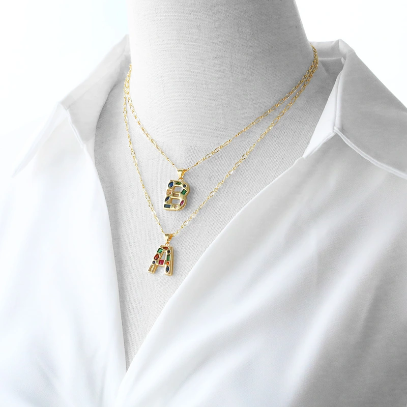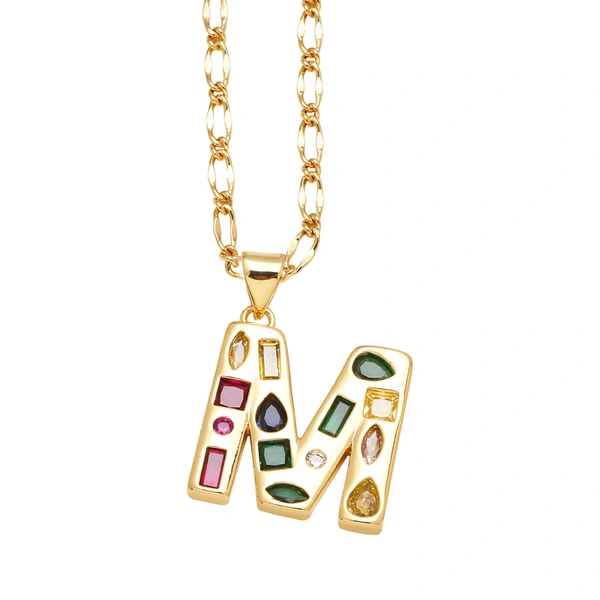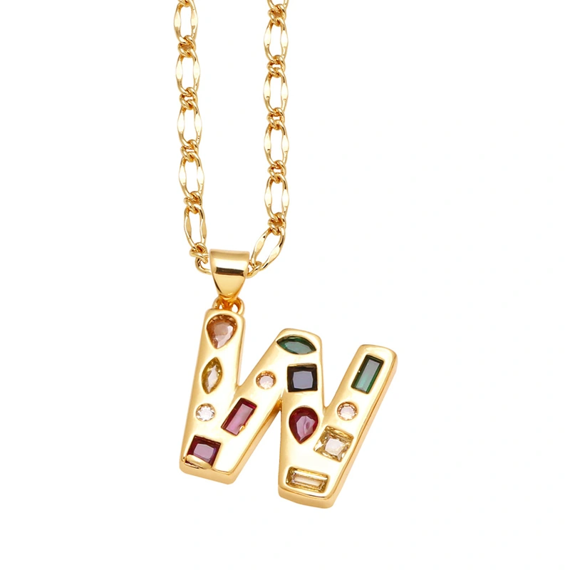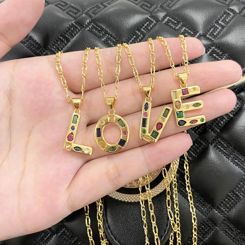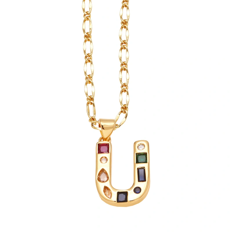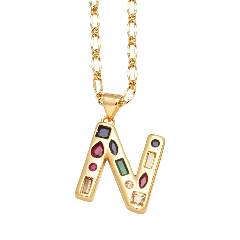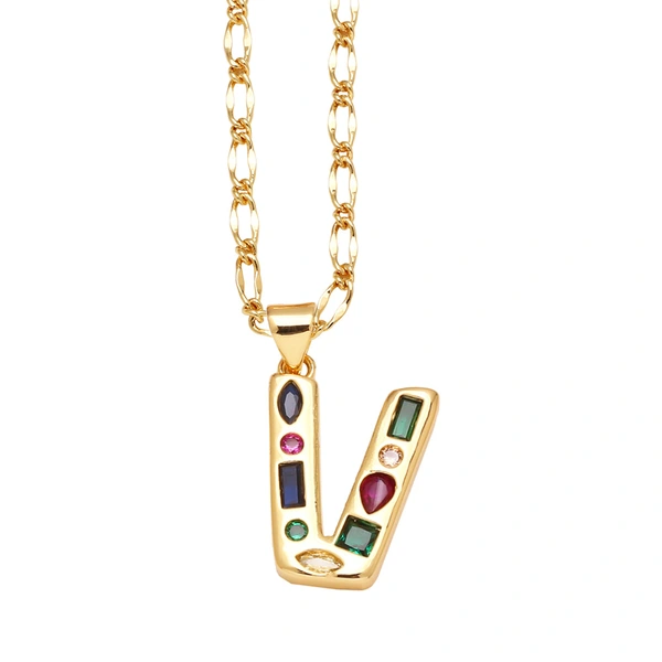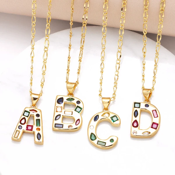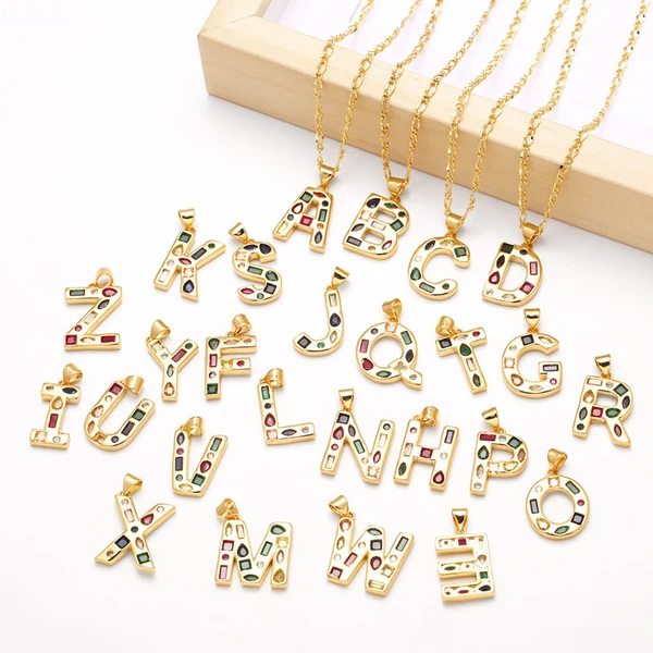 Новые популярные ювелирные изделия, кулон из цветного циркония с 26 английскими буквами, позолоченная ключичная цепочка nku83