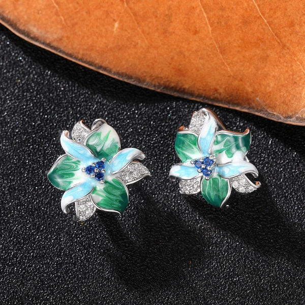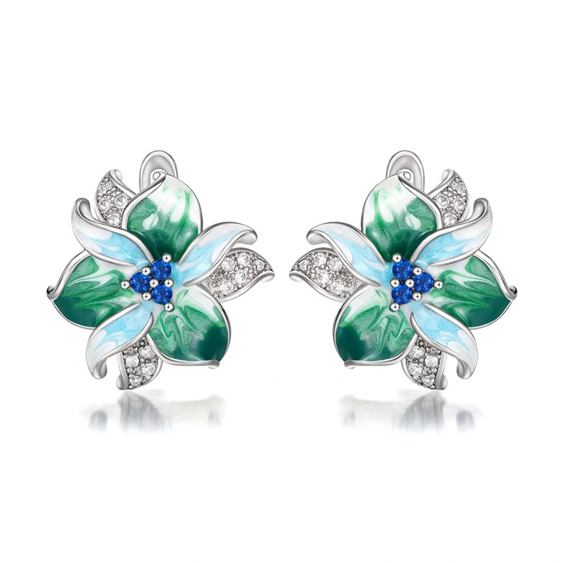Новые серьги с зелеными эмалевыми цветами, европейские и американские серьги из эпоксидного циркония, новинка, горячая распродажа
