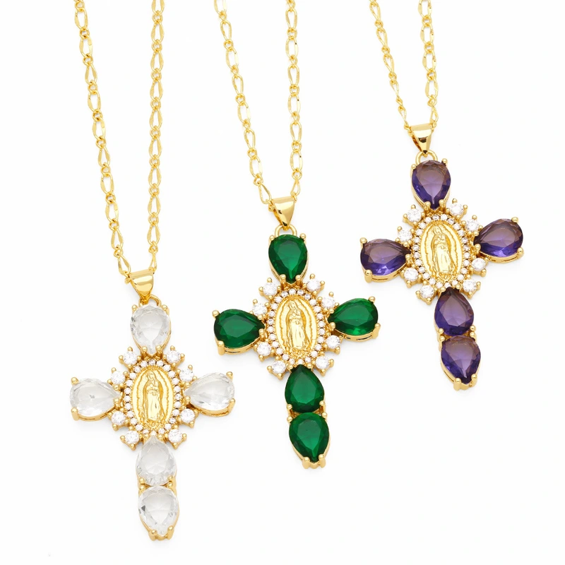 Ожерелье с крестом Мадонны в европейском и американском стиле хип-хоп, легкое, роскошное, высококачественное, с микро-инкрустацией циркониями, подвеска в виде Мадонны, nkt06