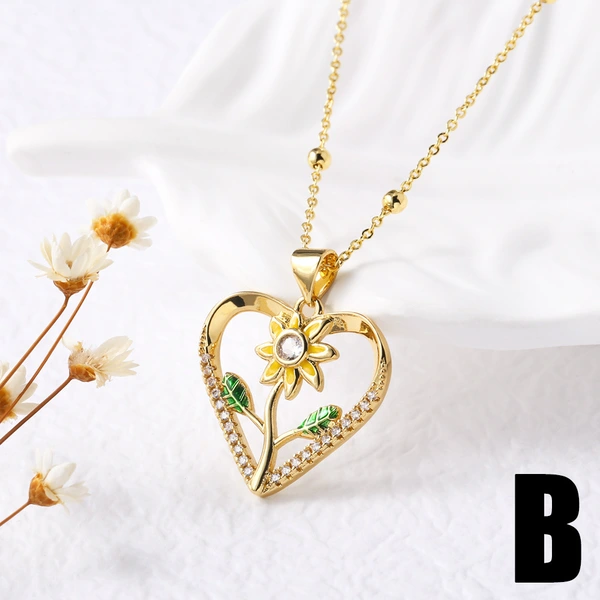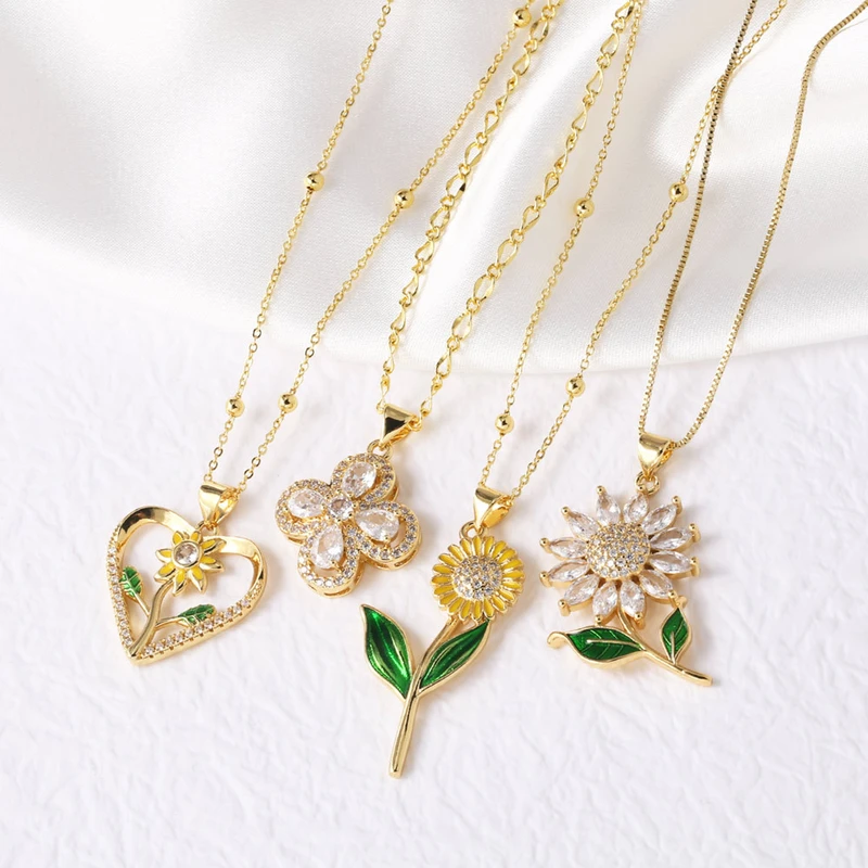 Ожерелье с подвеской в ​​форме сердца-подсолнуха, инкрустированное высококачественным цирконом, цепочка для ключиц nkv63
