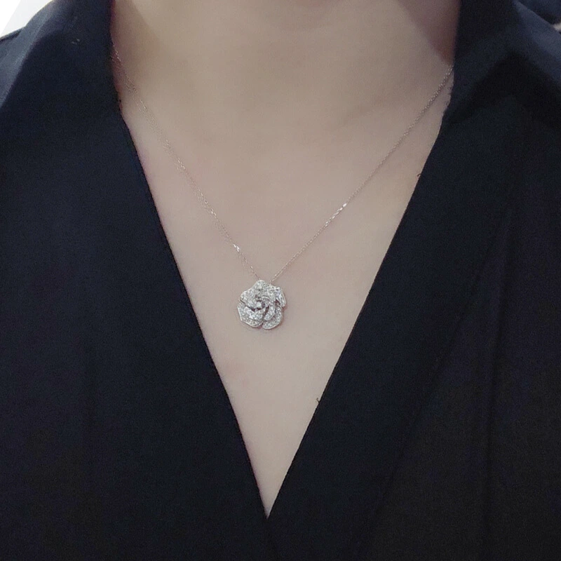 Ожерелье с цветочным узором во французском стиле, ретро-подвеска в виде камелии с полыми бриллиантами, цепочка на ключицу (включая цепочку)