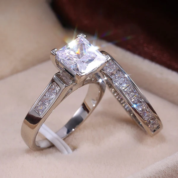 Новое кольцо принцессы в форме квадрата, популярное в европейском и американском стиле, инкрустированное цирконием, женское ювелирное кольцо для предложения руки и сердца