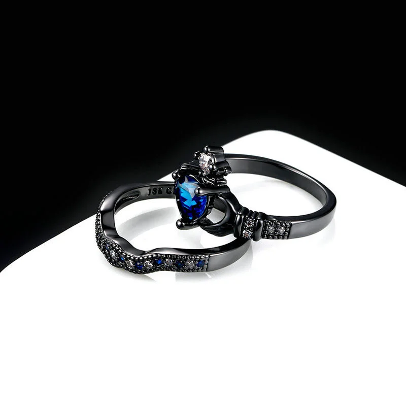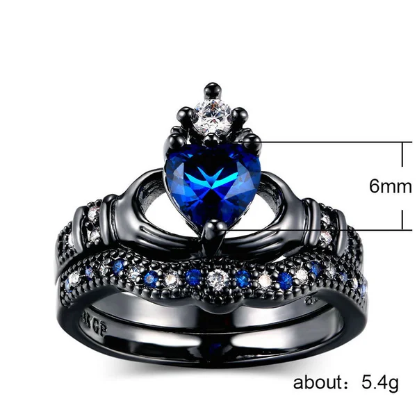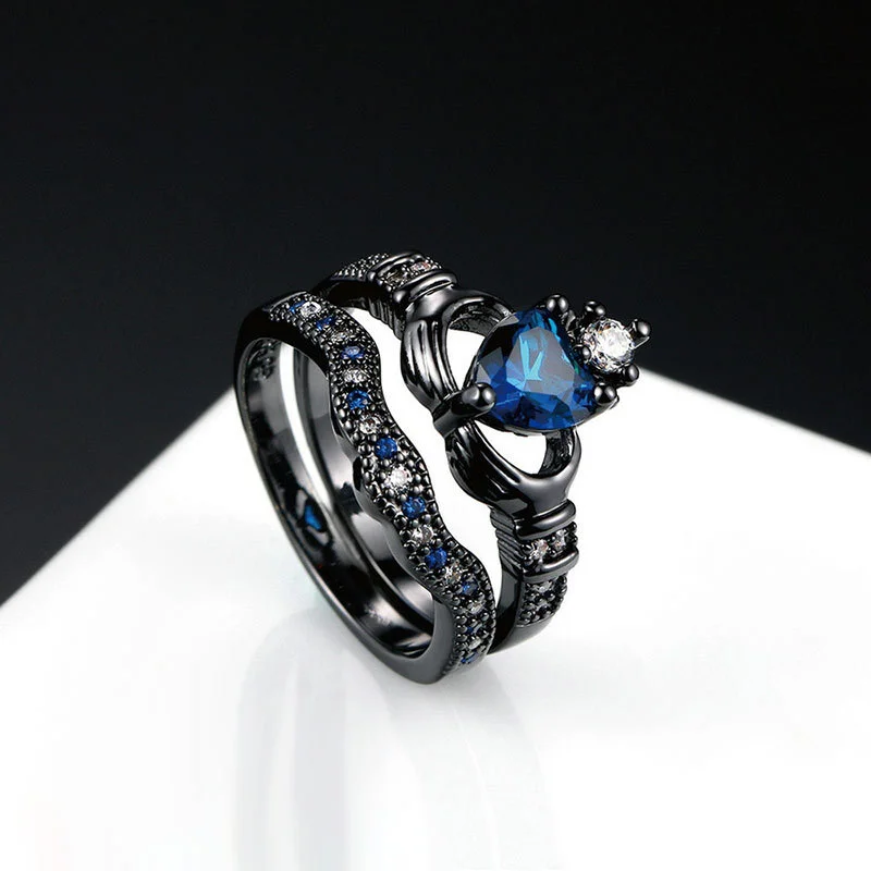 Популярное двухслойное кольцо с короной в форме сердца с сапфиром на женскую руку, европейская и американская мода, черное золото