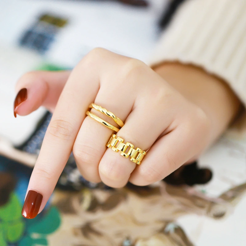 Популярное двухслойное открытое кольцо с нишевым дизайном, высококачественное медное кольцо с покрытием из 18-каратного золота, оправа для любви 65