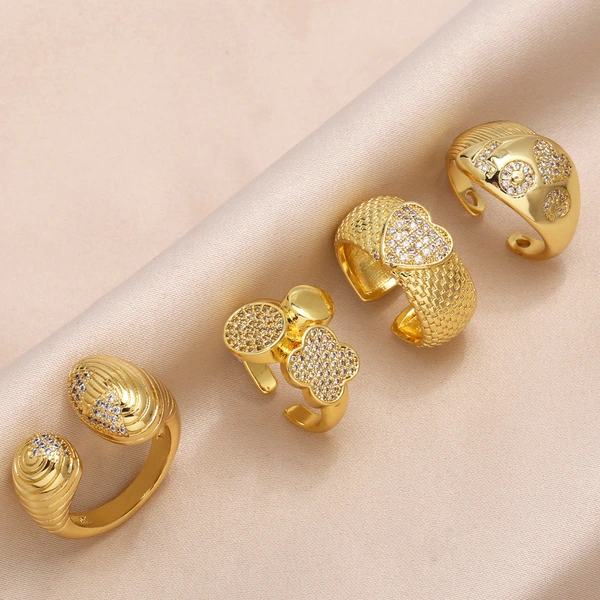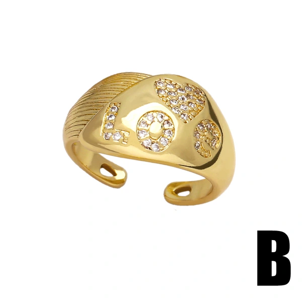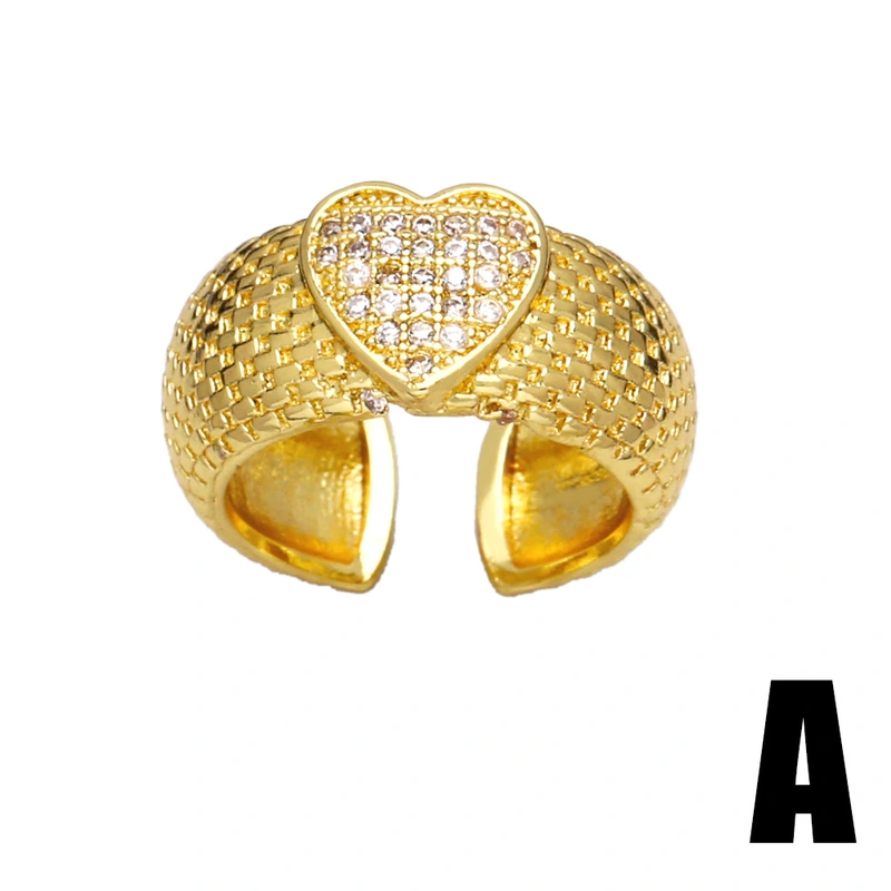Популярное женское кольцо в форме сердца с позолотой и цирконом, регулируемое разомкнутое кольцо rip45