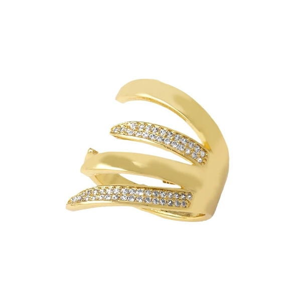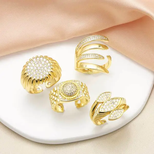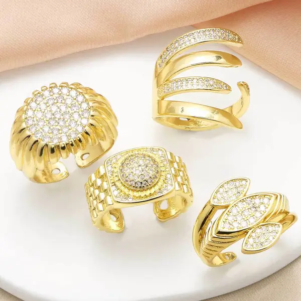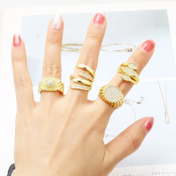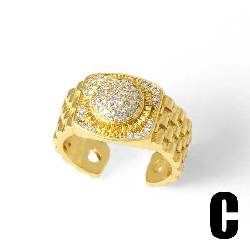 Популярное женское кольцо с круглым цирконием, покрытое медью, настоящее золото, ретро, ​​двухслойное, открытое кольцо rih53
