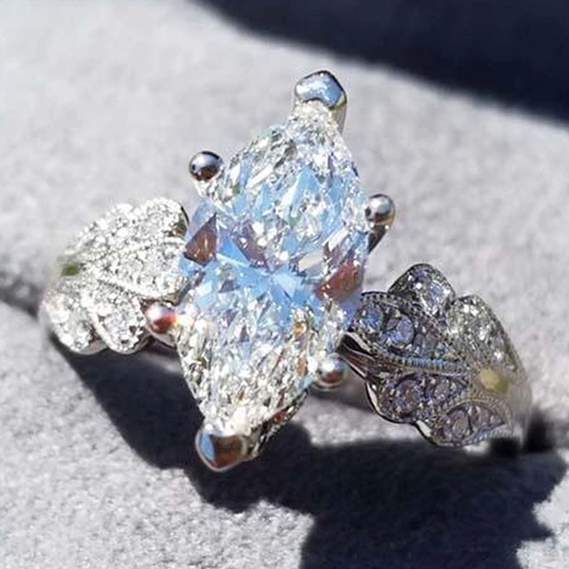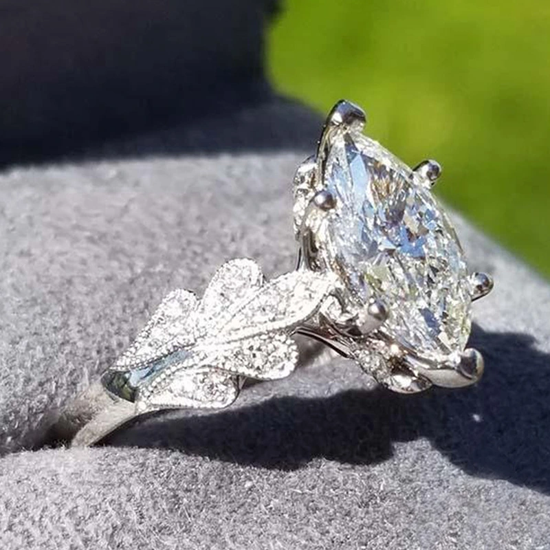 Популярное кольцо с инкрустацией из циркония маркиза, модное кольцо с цветком в виде ажурного листа, европейское и американское кольцо