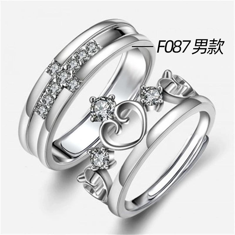 Популярное корейское парное кольцо с подвижным кольцом и покрытием из белого золота для мужчин и женщин, с гравировкой «Её король, его королева»