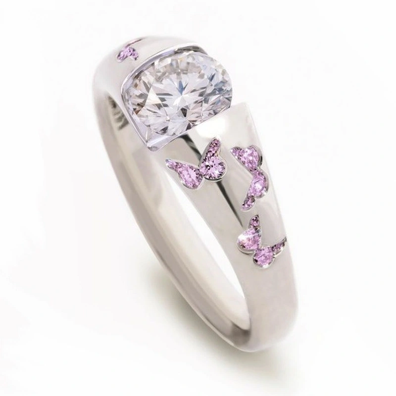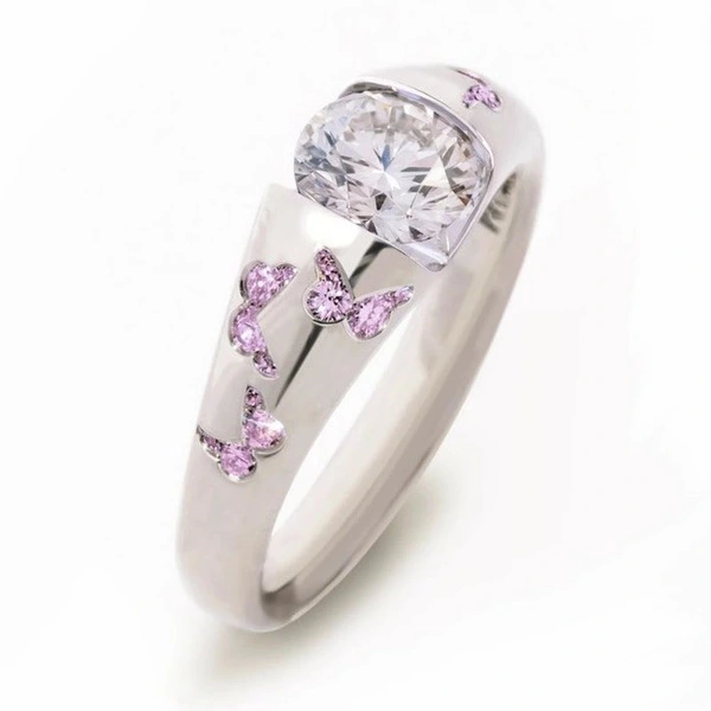 Популярное модное и простое женское кольцо с цирконием, разноцветный узор в виде бабочки, посеребренное кольцо оптом