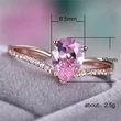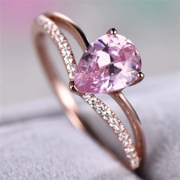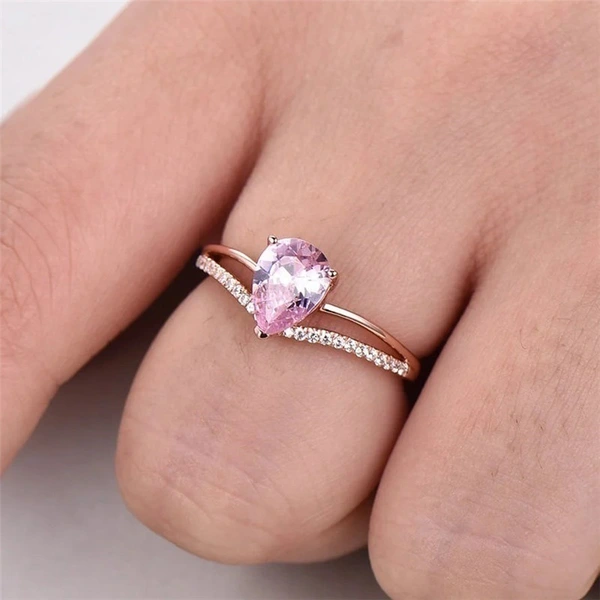 Популярное новое стильное кольцо с блестящими бриллиантами, розовым цирконием-капелькой, женское европейское и американское креативное V-образное обручальное кольцо в форме сердца