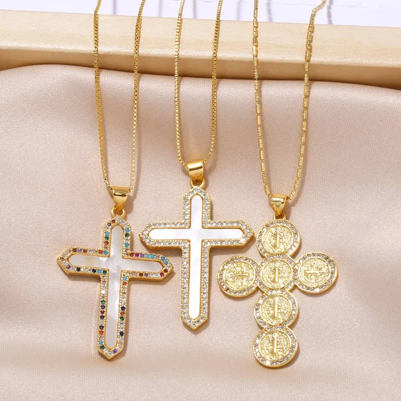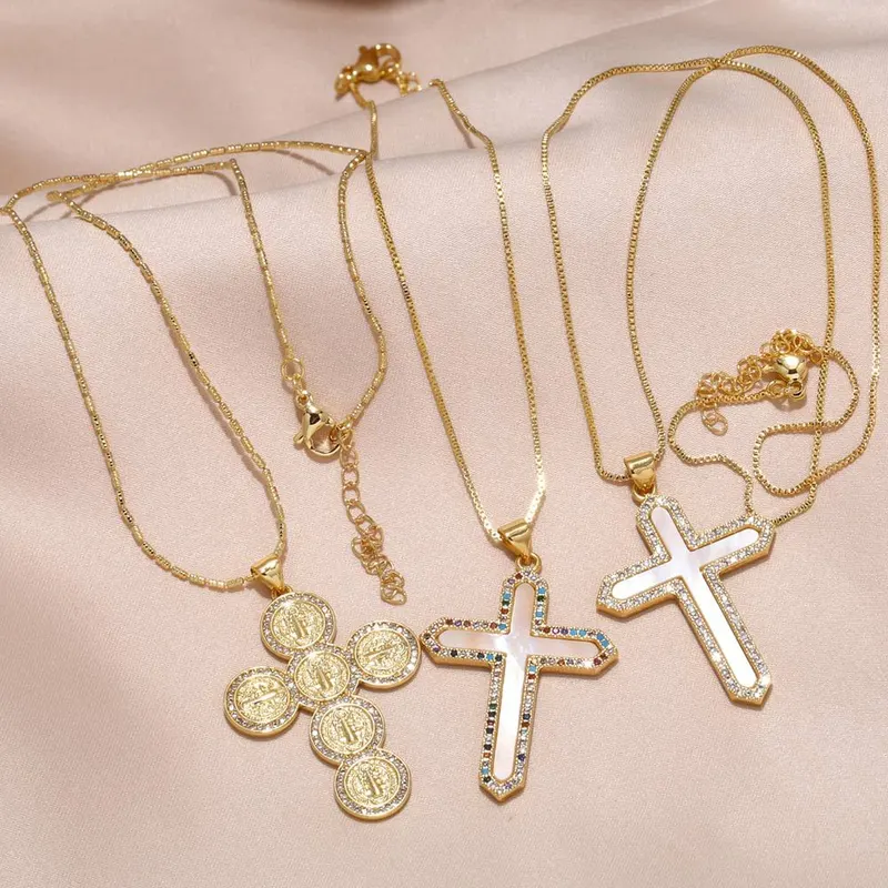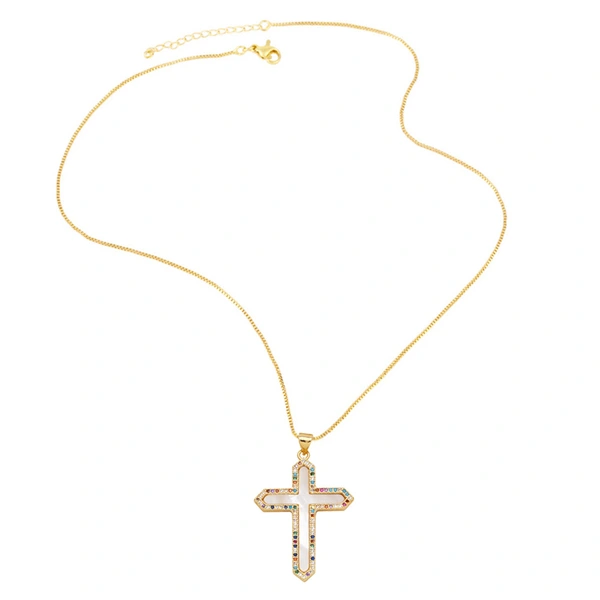 Популярное ожерелье с подвеской в ​​виде креста Мадонны, универсальная позолоченная цепочка с цирконами на ключицу nka097