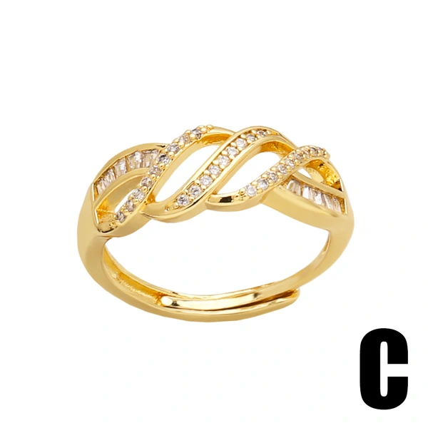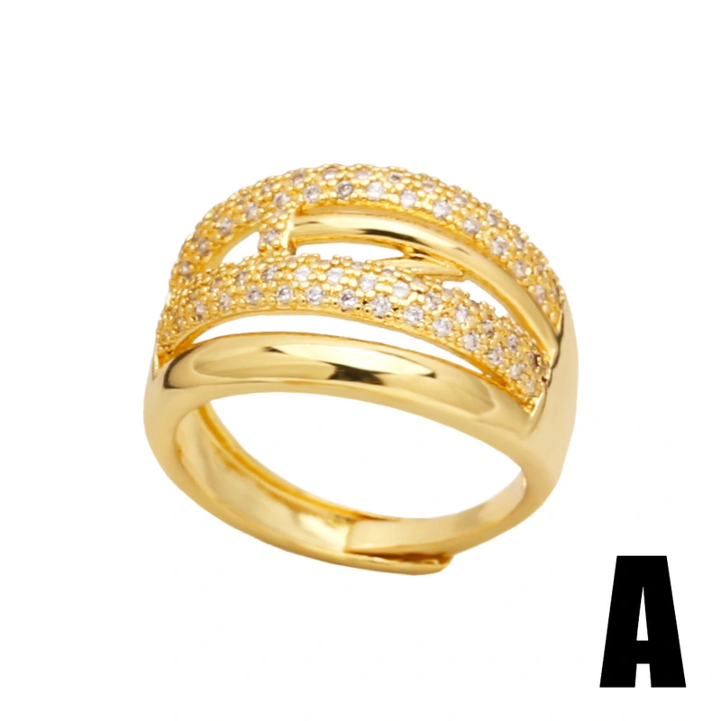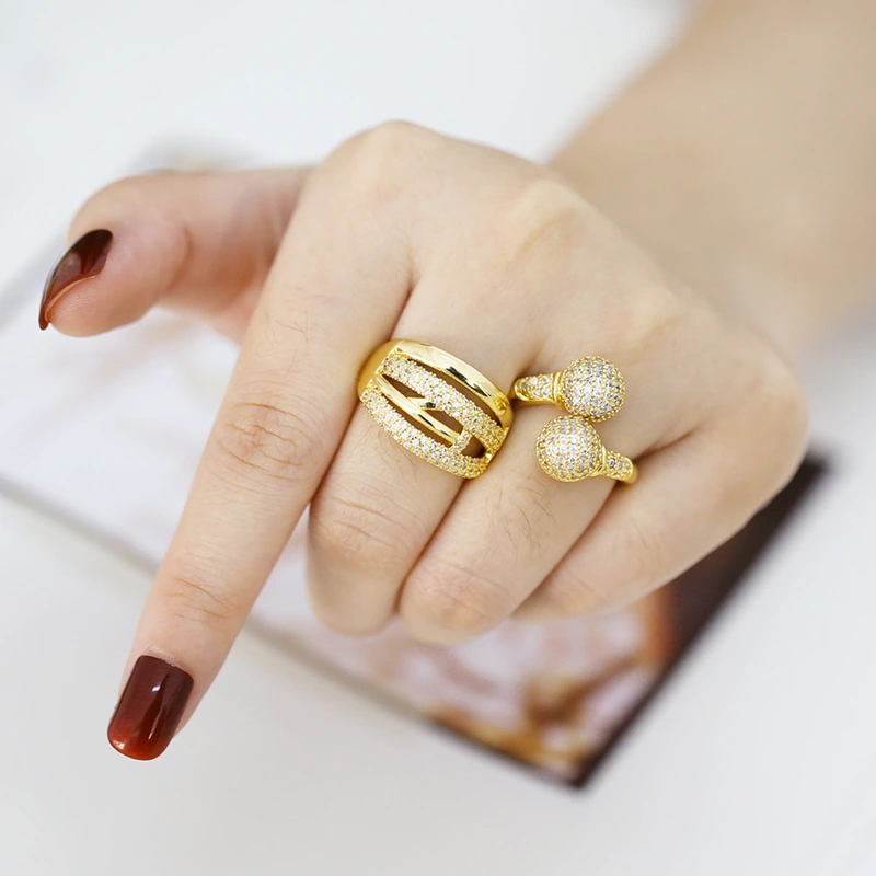 Популярное открытое кольцо с уникальным дизайном, полностью покрытое золотом, двухслойное женское ювелирное украшение ris19