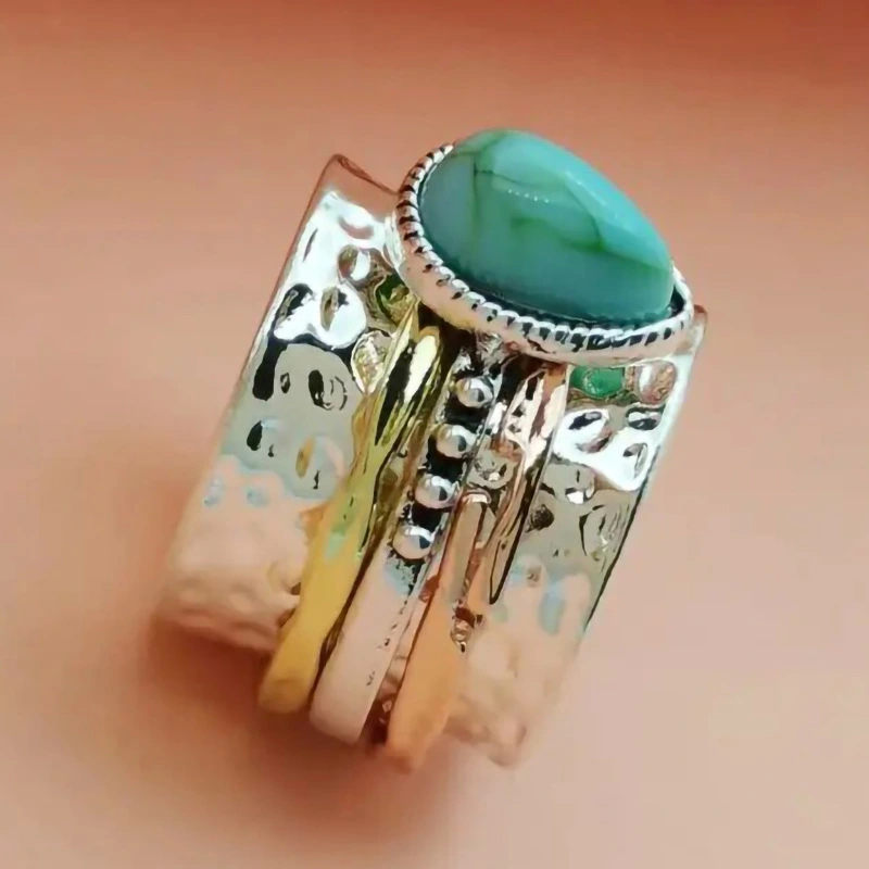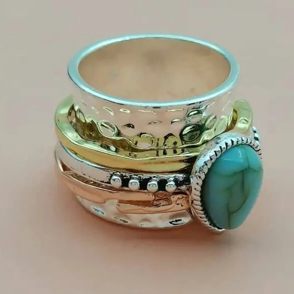 популярное ретро-кольцо с имитацией бирюзы, капля воды, трехцветное кольцо, властное кольцо в стиле бохо