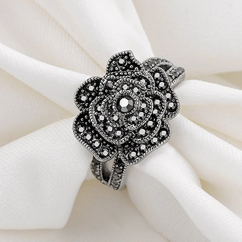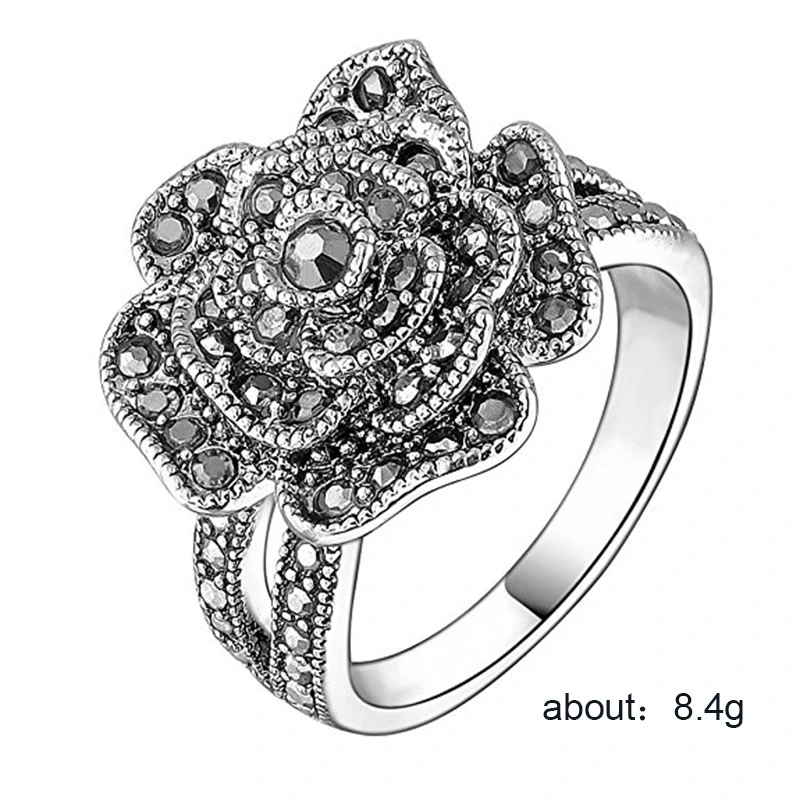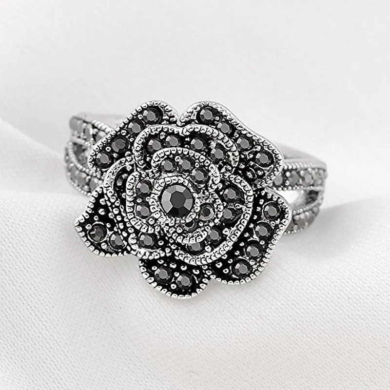 популярные ретро-кольца, креативные кольца с микробриллиантами в черных розах, модные цветочные аксессуары для колец