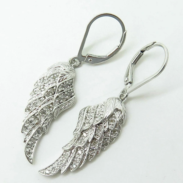 популярные свадебные аксессуары, подвесные серьги, изысканные роскошные серьги в форме листьев с перьями, длинные ангельские крылья