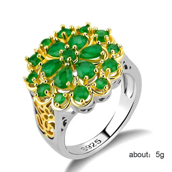 Популярный аксессуар: женское кольцо с изумрудом в виде двухцветного цветка с гальваническим покрытием, прямые продажи с фабрики, креативное кольцо