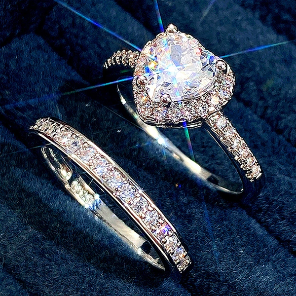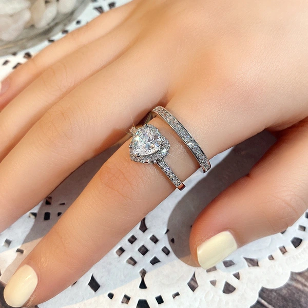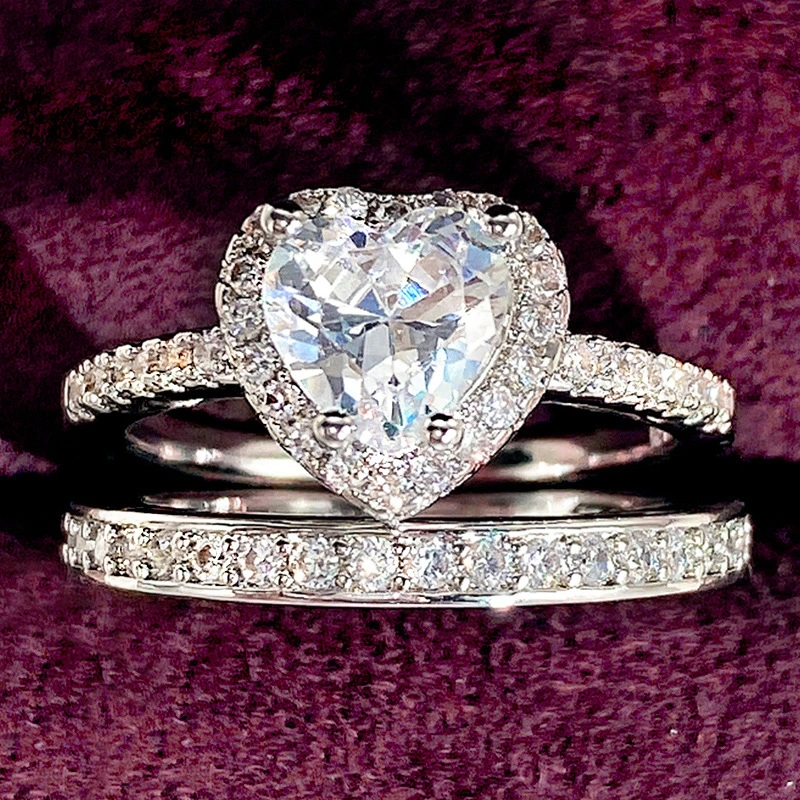 Популярный модный двухслойный комплект колец «два в одном» с европейской и американской любовью, женское кольцо с цирконием