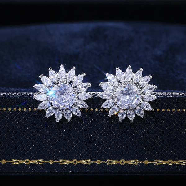 прямая трансляция новых красивых сияющих серег из подсолнуха с цирконием, больших, модных и универсальных креативных украшений для ушей оптом